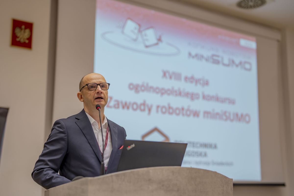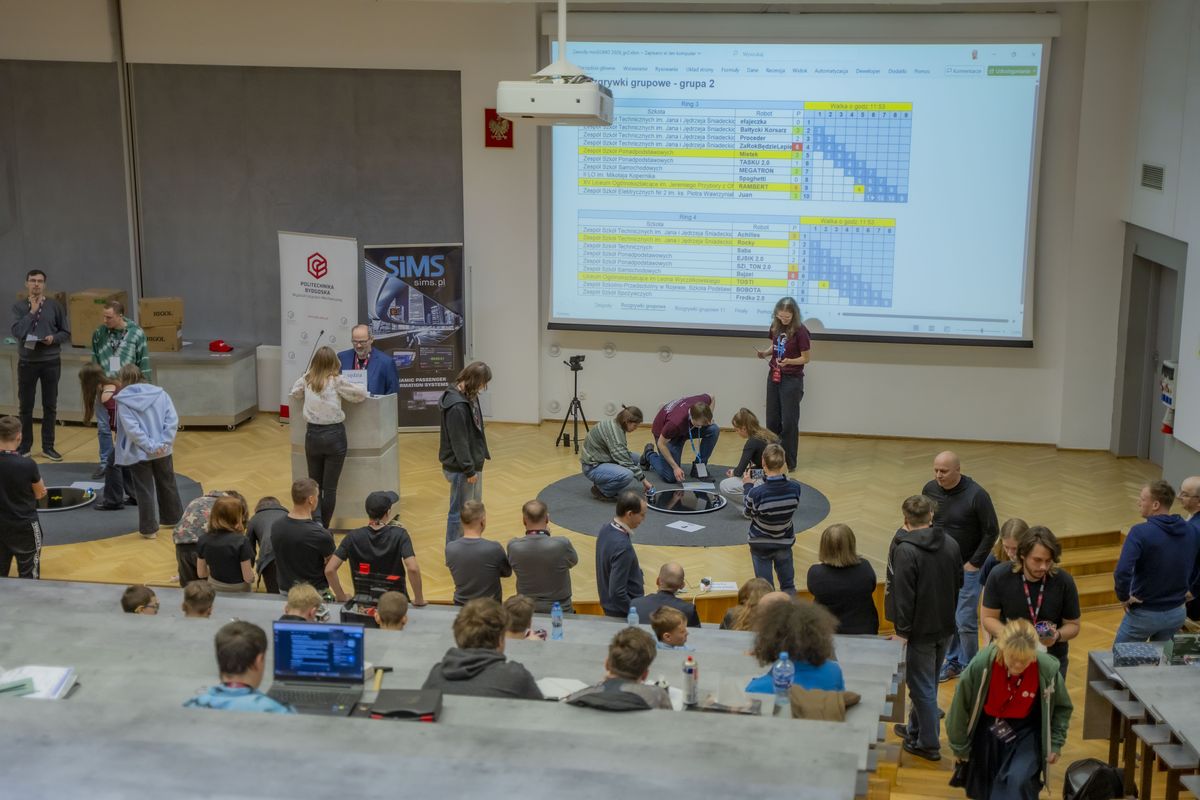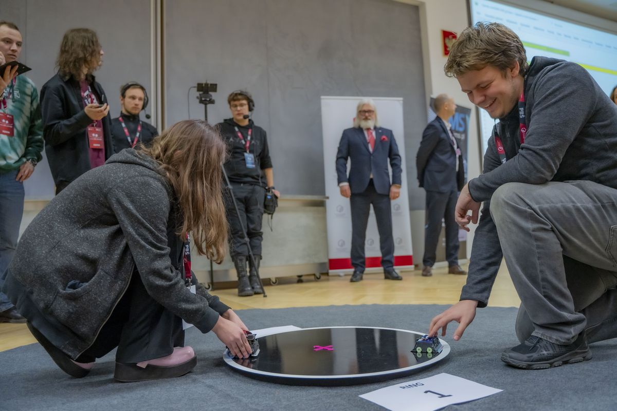 Za nami 18. edycja Zawodów Robotów miniSUMO zorganizowanych przez Wydział Inżynierii Mechanicznej oraz Wydział Telekomunikacji, Informatyki i Elektrotechniki PBŚ.