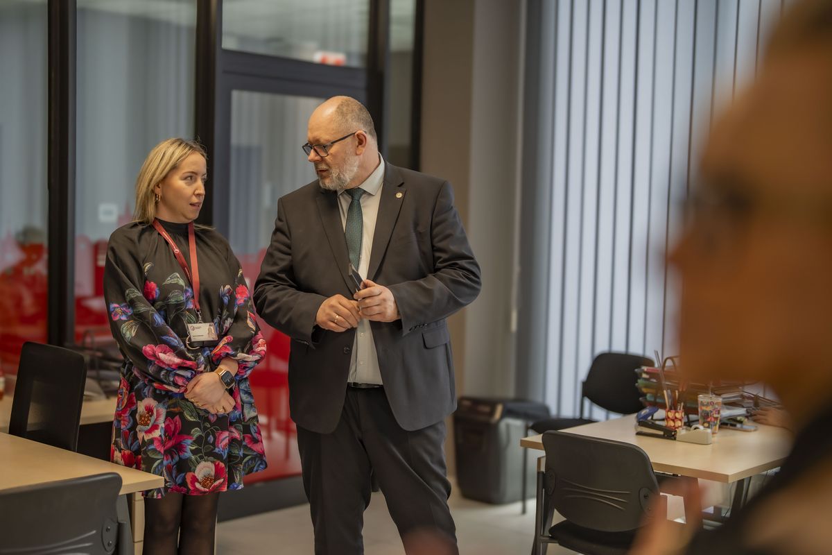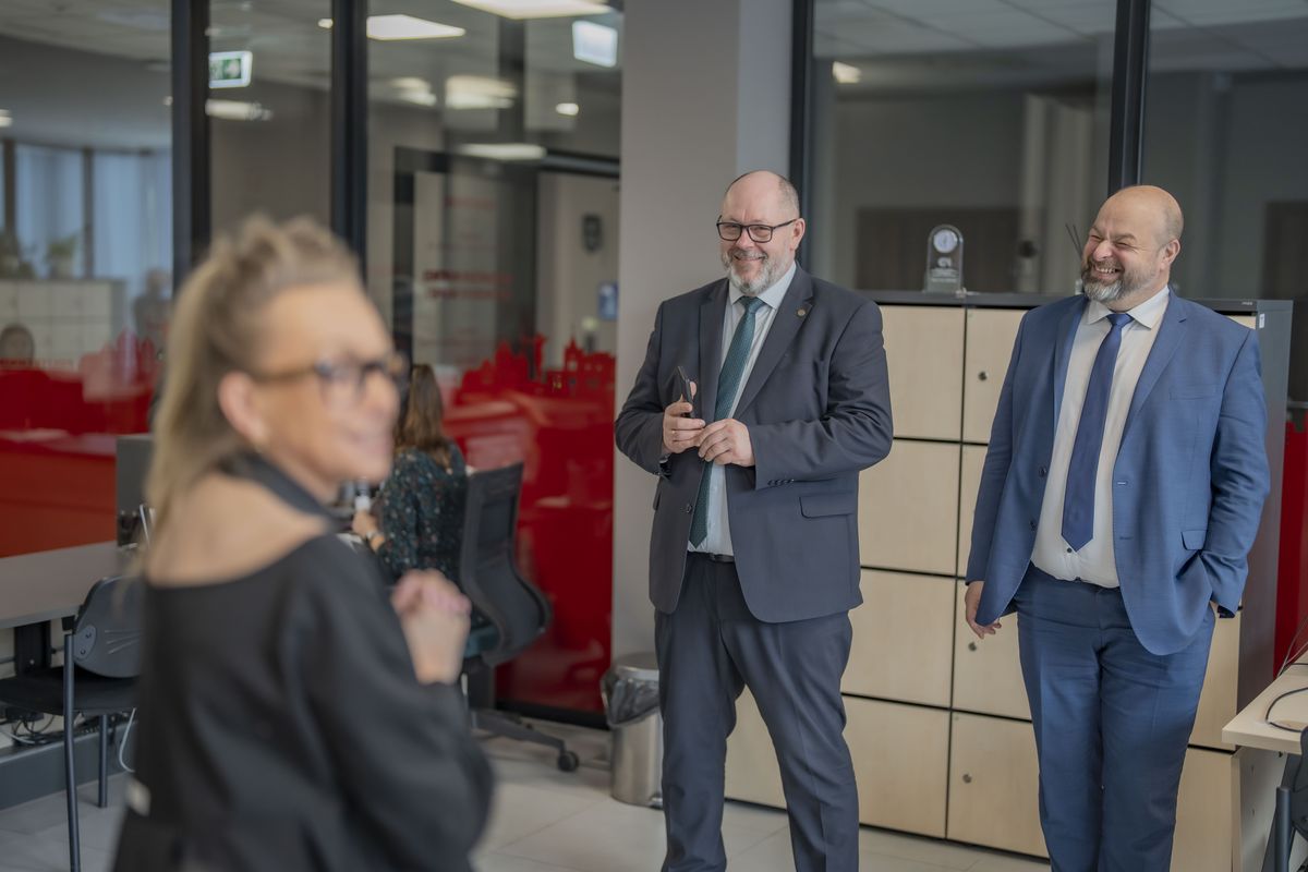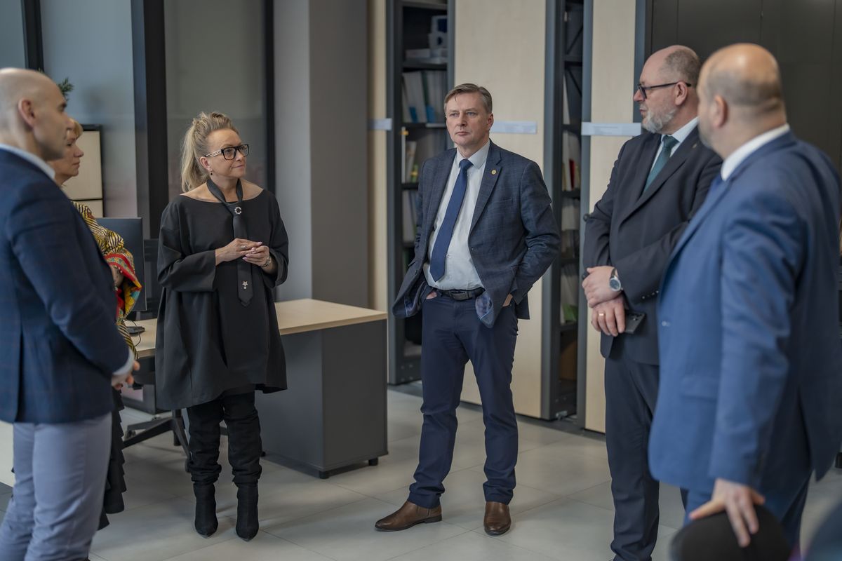 Trwa wizyta przedstawicieli Szkoły Głównej Gospodarstwa Wiejskiego w Warszawie na Politechnice Bydgoskiej: rektora - prof. dr. hab. Michała Jerzego Zasady, prorektora ds. umiędzynarodowienia, I zastępcy rektora - dr hab. Marty Mendel, prof. SGGW, prorektora ds. rozwoju - prof. dr. hab. Marcina Gołębiewskiego, prorektora ds. dydaktyki - prof. dr. hab. Jarosława Gołębiewskiego oraz kanclerza - dr. inż. Arkadiusza Gruchały.