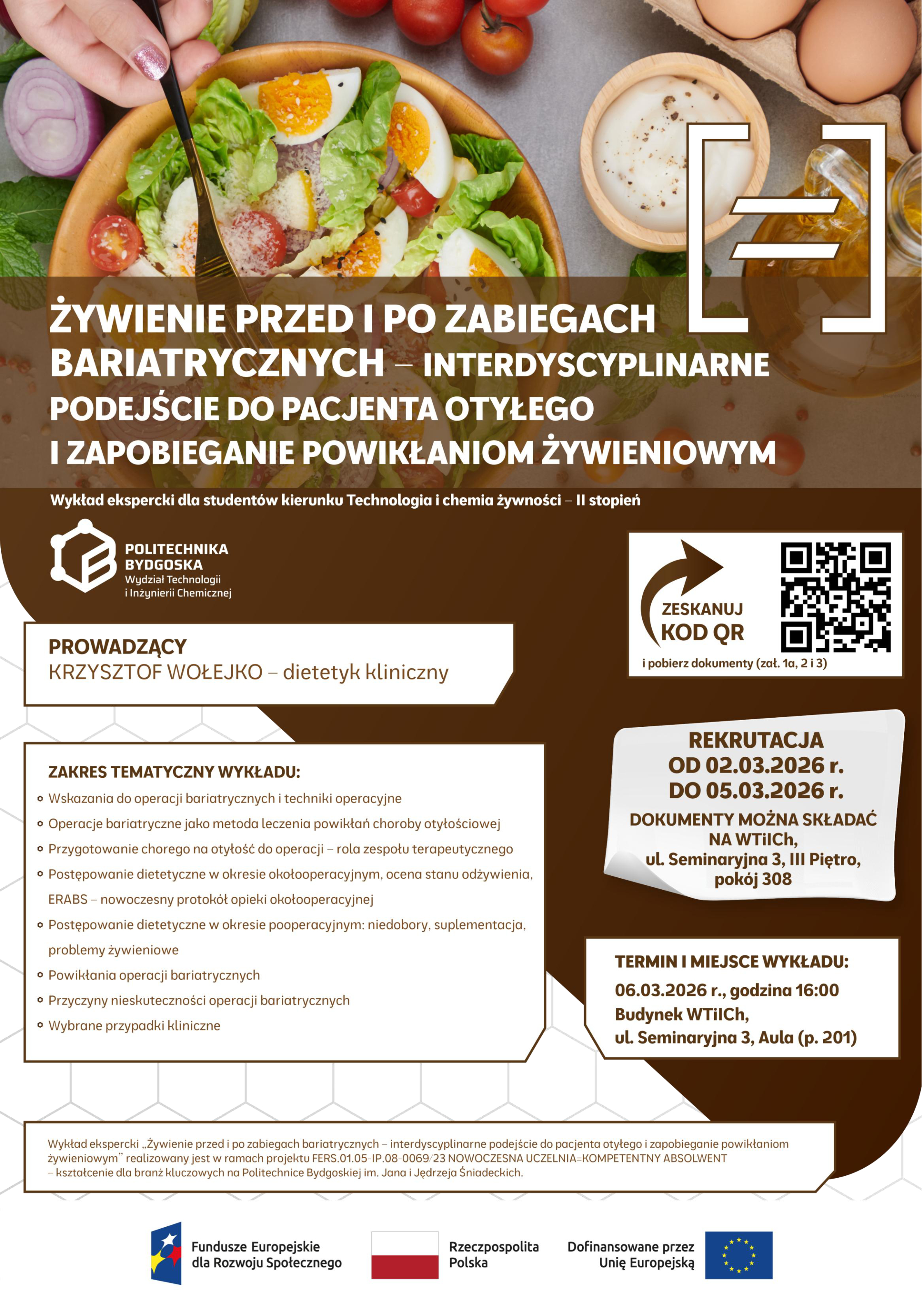 Zapraszamy do zapisów na wykład ekspercki „Żywienie przed i po zabiegach bariatrycznych – interdyscyplinarne podejście do pacjenta otyłego i zapobieganie powikłaniom żywieniowym” realizowany w ramach projektu FERS.01.05-IP.08-0069/23